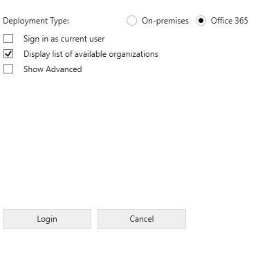 This will give you the traditional Microsoft Login dialogue box where after login in will allow you to chose your environment.
