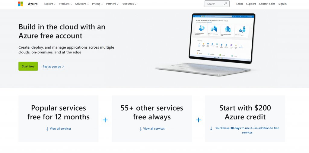 Go to the Azure Home Page and click on Free Azure Account on the top right corner.