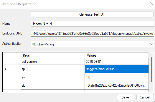Where the Endpoint URL would be : https://prod-00.uksouth.logic.azure.com:443/workflows/a1849ca023fe4c232396e8c72fcac9234/triggers/manual/paths/invoke